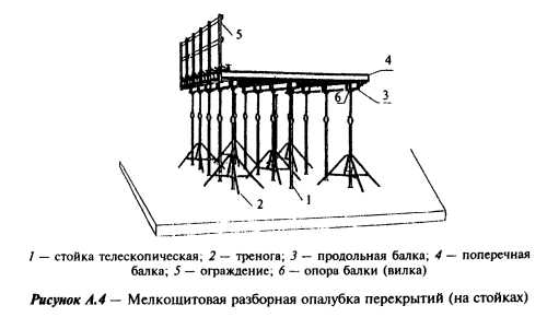 Схема мелкощитовой разборной опалубки на рамах для монолитных перекрытий.