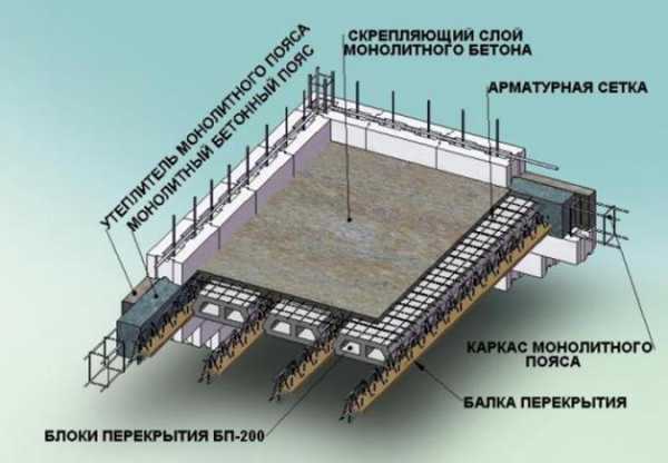 Схема межэтажного перекрытия из бетона.Различают следующие типы бетонного перекрытия: