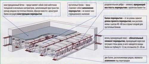 Обычно несущими составляющими конструкциями выступают балочные межэтажные перекрытия, находящиеся на одном расстоянии друг от друга. Пространство между ними занимают заполнители.