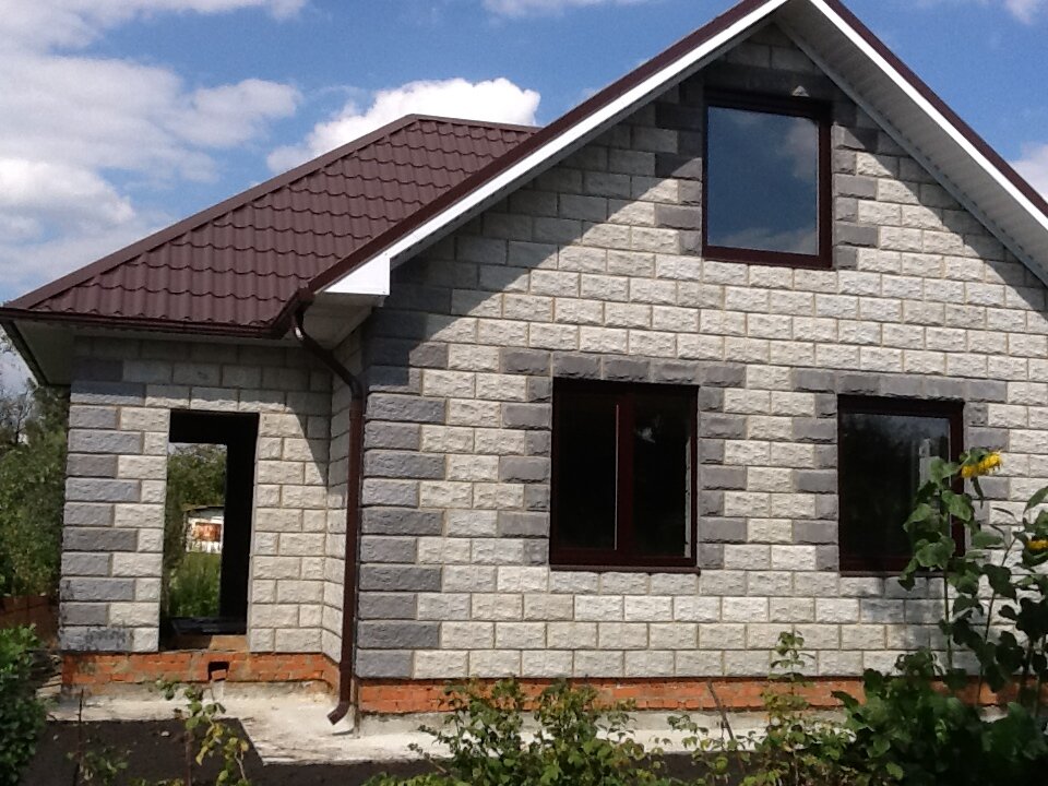 Основным достоинством технологии считается сокращение сроков работ и некоторая экономия за счет того, что фасад не требует дополнительного утепления и декоративной отделки. Потребуется только покраска, если в целях экономии купить блоки естественного, серого цвета, хотя и они смотрятся вполне привлекательно.