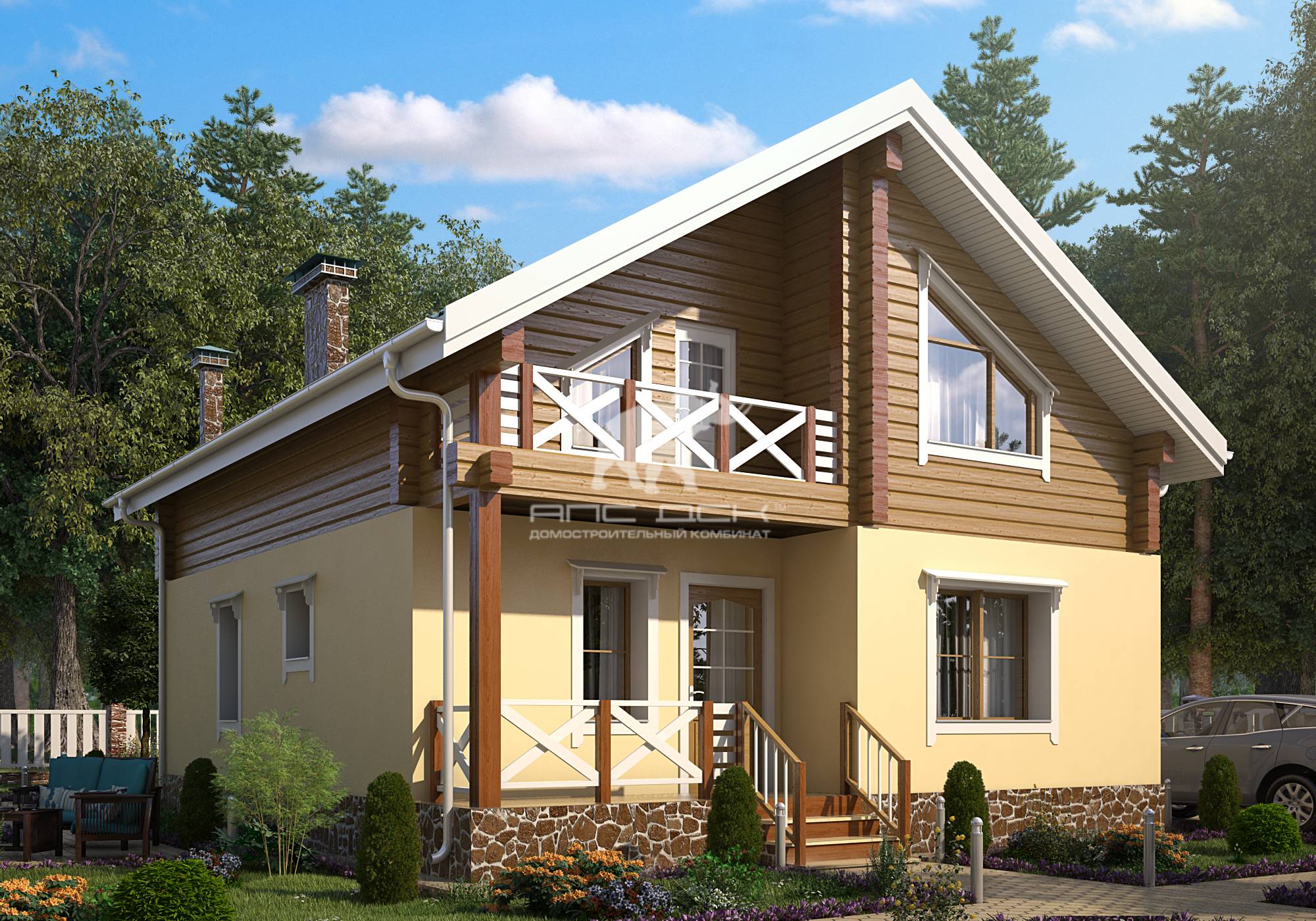 ×Комбинированые дома из камня и дерева, проекты, под ключ- Антанта