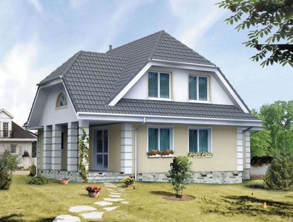 Этот дизайн крыши дома напоминает вам красивый коттедж, выделяющийся среди живописных окрестностей. У этой крыши нет вертикальных сторон, которые могли бы быть похожи на двускатную. Обычно эта крыша в стиле коттеджа с достаточно пологим наклоном, где все стороны наклонены к стенам, выглядит красиво и вписывается в нее, как кусочки пазла.