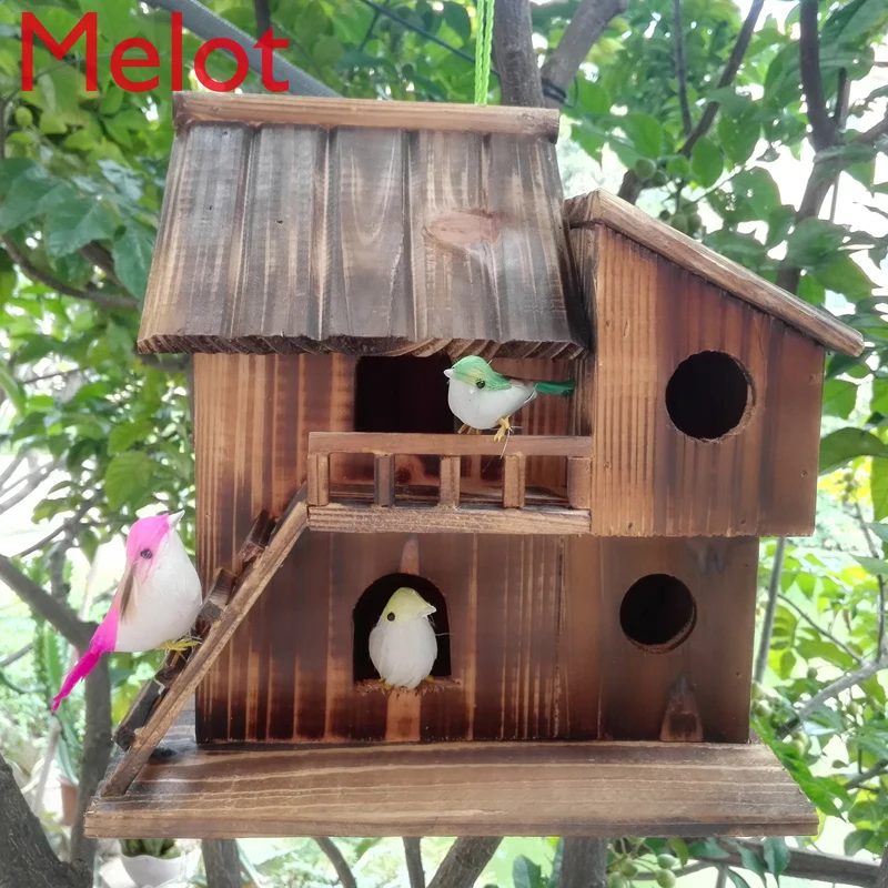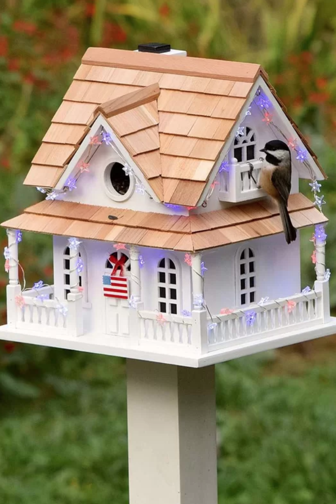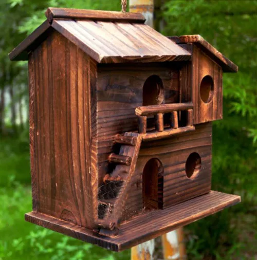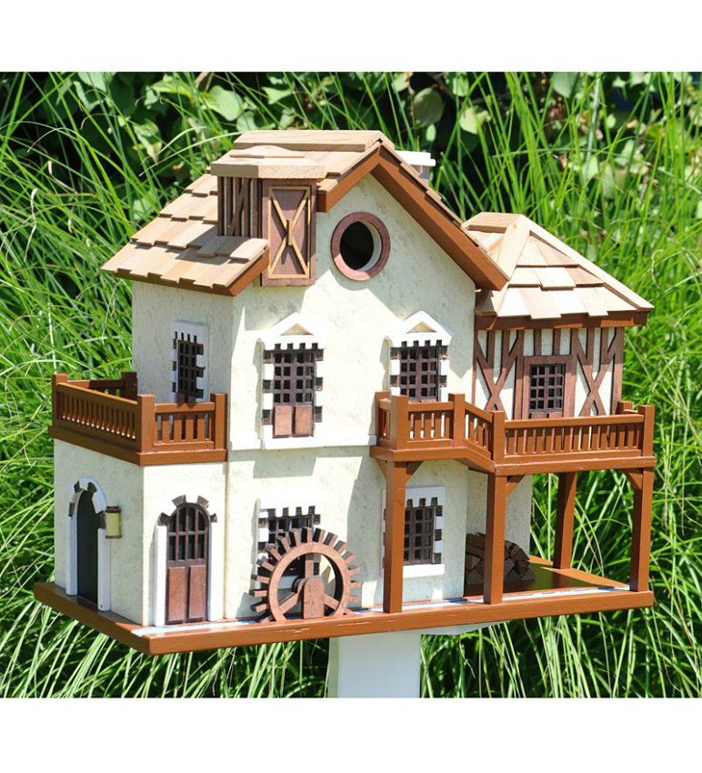 Этот маленький домик имеет очаровательные аксессуары, но при этом отвечает требованиям птиц, включая съемную заднюю стенку для чистки. Одно примечание: этот уникальный скворечник, вероятно, лучше закрепить на стене или столбе, а не подвешивать его на ветке, чтобы обеспечить гнездящимся птицам большую устойчивость.