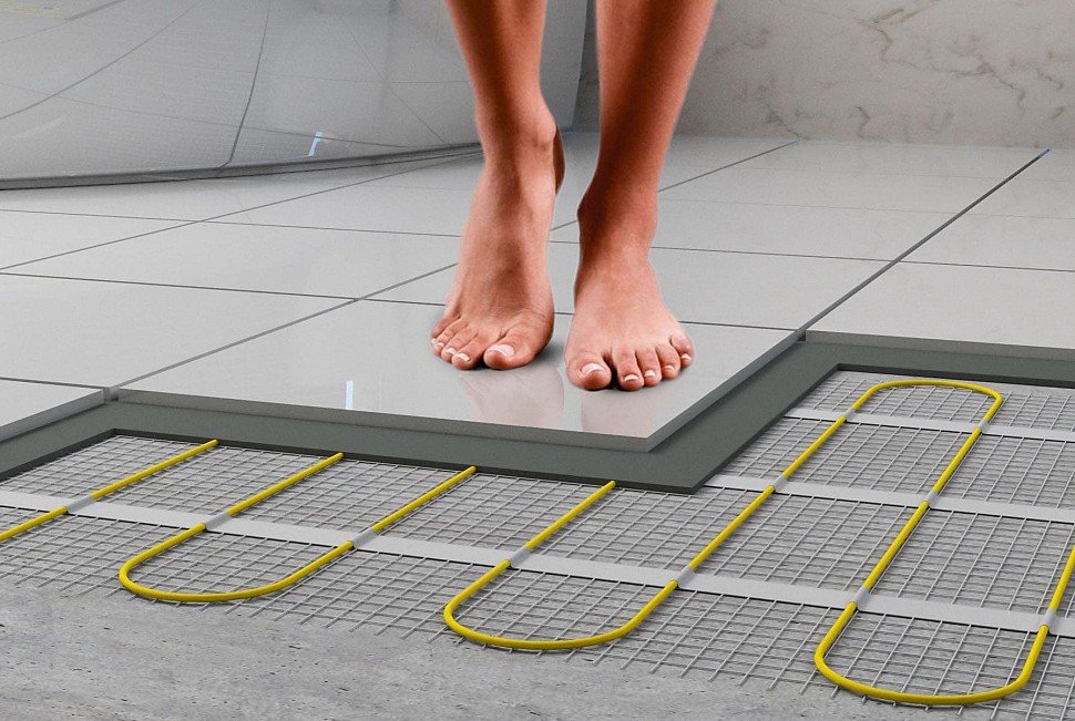 Этот тип теплого пола отлично подходит под плиточное напольное покрытие. Приклеивая плитку при помощи клеящего состава к полу, фиксируется этим клеем и термомат.