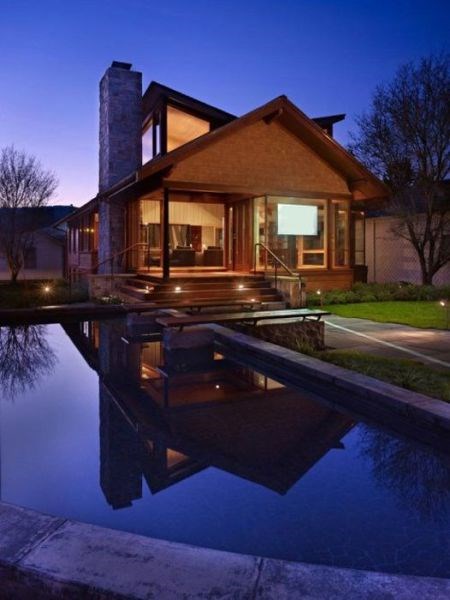 Деревянный дом гармонично сочетается с природным ландшафтом, чего не скажешь о бетоне и стекле, которые в свою очередь находятся с природой в контрасте, демонстрируя рукотворность сооружения. Несмотря на то, что строительные материалы для современных коттеджей имеют искусственное происхождение, проектируют их с учетом дружественности к окружающему миру.