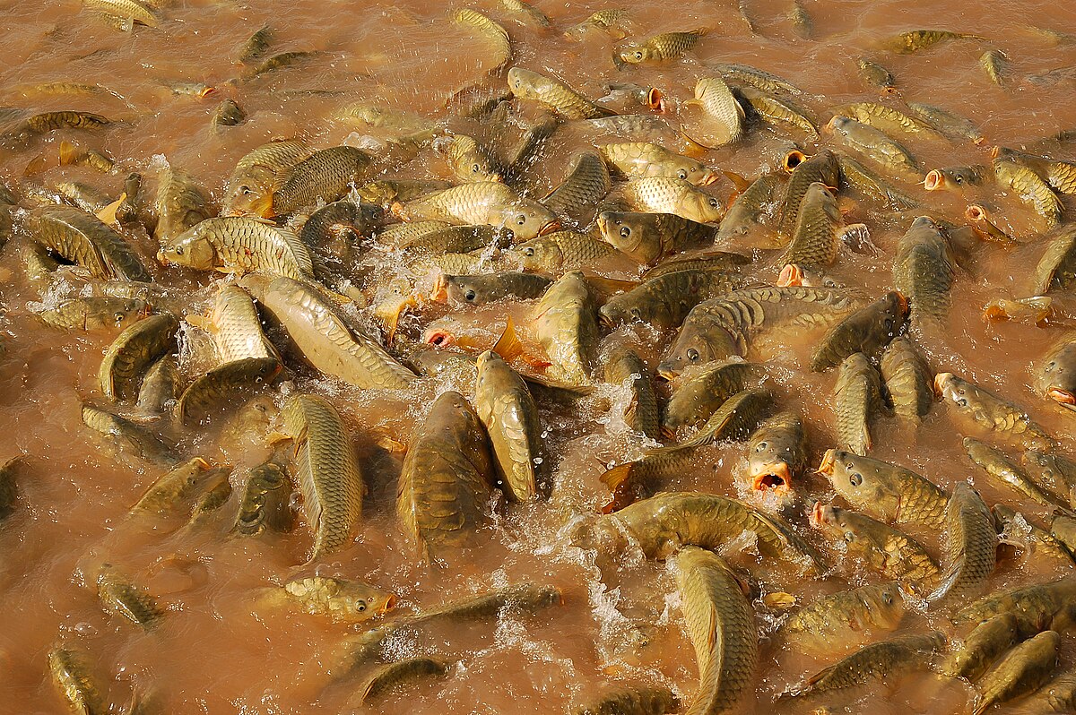 Карпа с карасем в дачном пруду лучше кормить 1−2 раза в день, в одно и то же время, на постоянно отведенном месте. Некоторые хозяева даже звонят при этом в колокольчик. Все это вырабатывает у рыбы условный рефлекс, она быстрее находит корм, лучше его усваивает, а корм, в свою очередь, не успевает закисать. Помните, чем ниже температура воды, тем меньше карп потребляет корма.