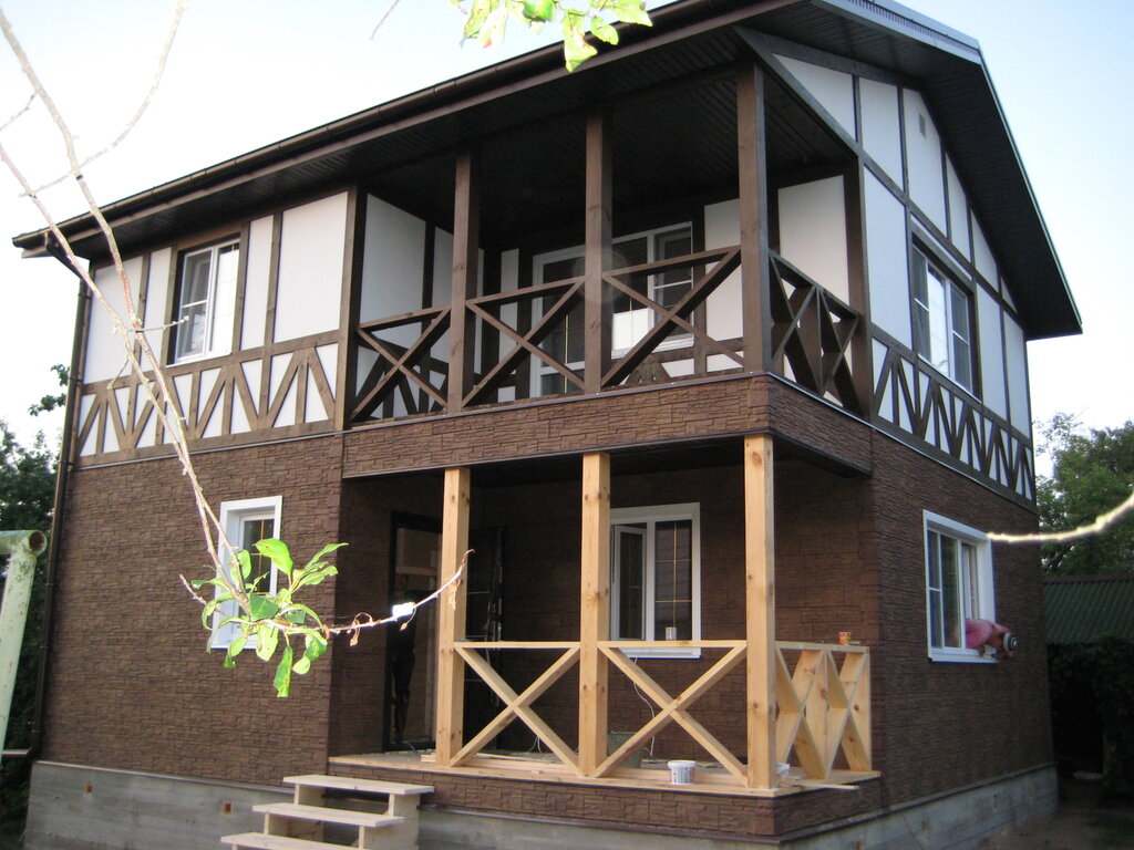 Опишем очередность отделки фасада дома в стиле фахверк своими руками. Весь ход работ условно можно разбить на несколько этапов.