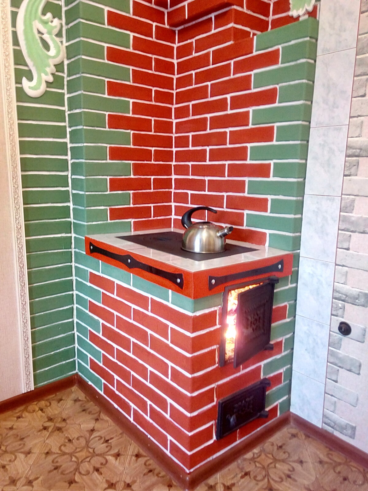 - Работа закончена, у нас получилось сделать своими руками простенькую, но достаточно эффективную печь из кирпича для дома.