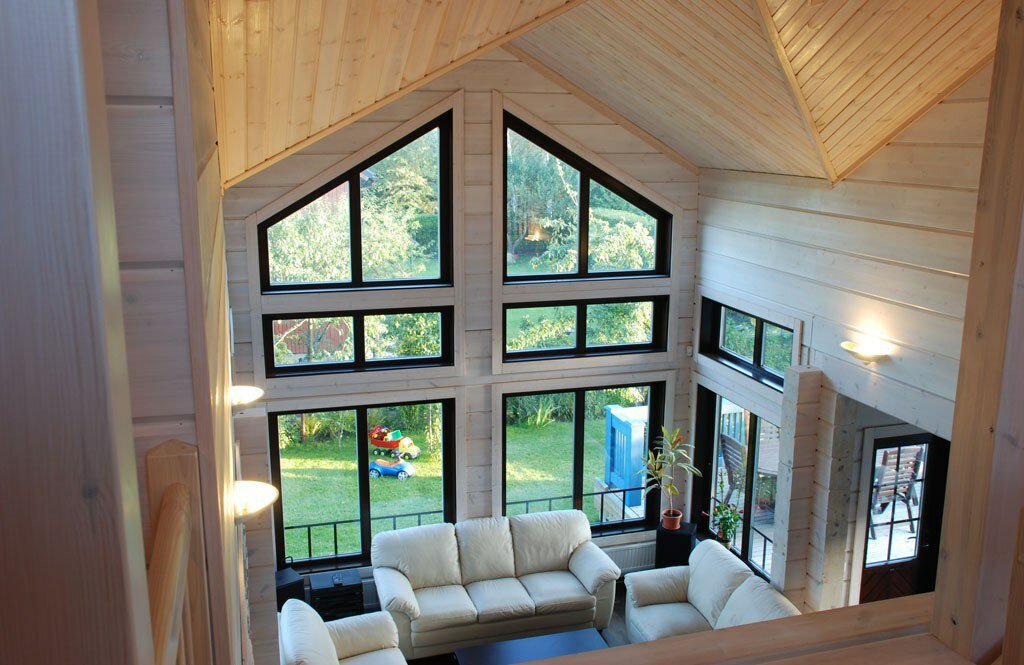 Деревянные окна в здании из ЛСТК