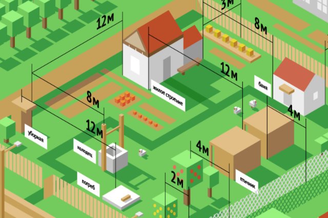 Обустройство придомовой территории, в том числе возведение построек, посадка зеленых насаждений, осуществляется по определенным санитарным нормам и правилам (СНиП). Они регулируют различные технологичные аспекты: