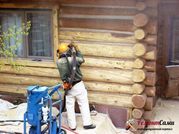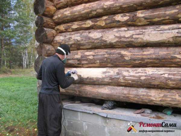 Затем старый бревенчатый сруб возвращается на свое место, и начинается новый этап – его шлифовка. Для этого потребуется специальная машинка, оборудованная насадками. С ее помощью обработке удастся подвергнуть самые труднодоступные участки. Рук и простой наждачной шкурки для этой манипуляции будет явно недостаточно. Шлифовку проводят до появления слоя со светлой окраской.