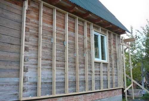 - на фасад деревянного дома крепятся вертикально брусы при помощи кронштейнов;