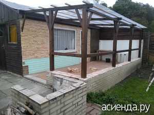 Для пристройки подойдёт любой материал: пенобетонные блоки, брёвна, брус, уличная вагонка, блокхаус. Наличие стен обязывает гармонично сочетать материал с основной постройкой.
