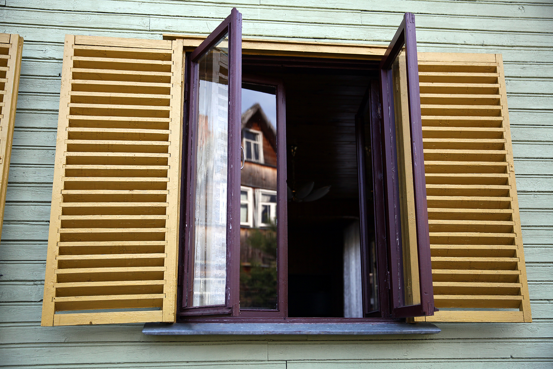 Внешние пластиковые ставни на окне второго этажа