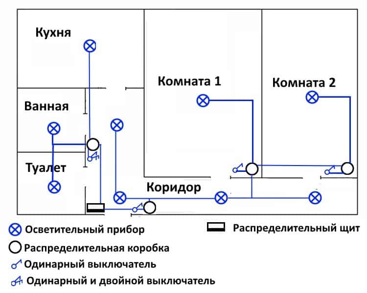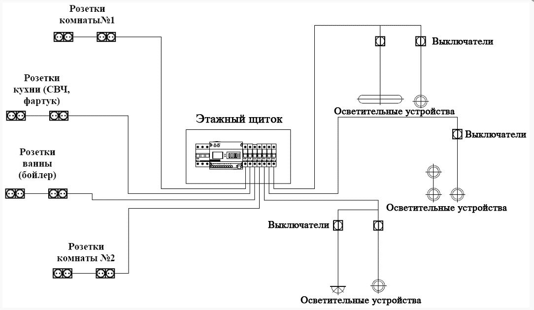 Если у вас есть желание, тогда для освещения тоже можно будет создать несколько розеточных групп. Каждая из групп должна обслуживать по 2 комнаты вашего дома.