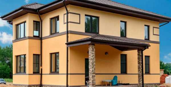 - Завершающая отделка фасада. На этом этапе подшиваются свесы карнизов к крыше, и устанавливается система отвода воды. Ну и непосредственно происходит отделка стен. Благодаря ей можно достичь следующих целей: выровнять поверхность, скрывая неровности, защитить материал от механических повреждений и попадания влаги, придать дому красивый эстетический вид.