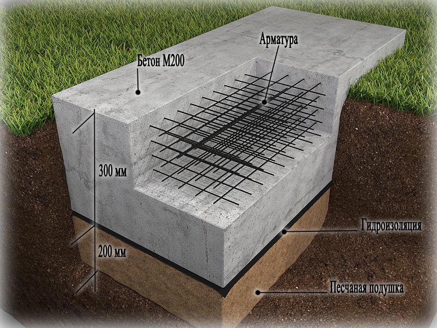 Устройство монолитного фундамента ленточного типа происходит следующим образом: