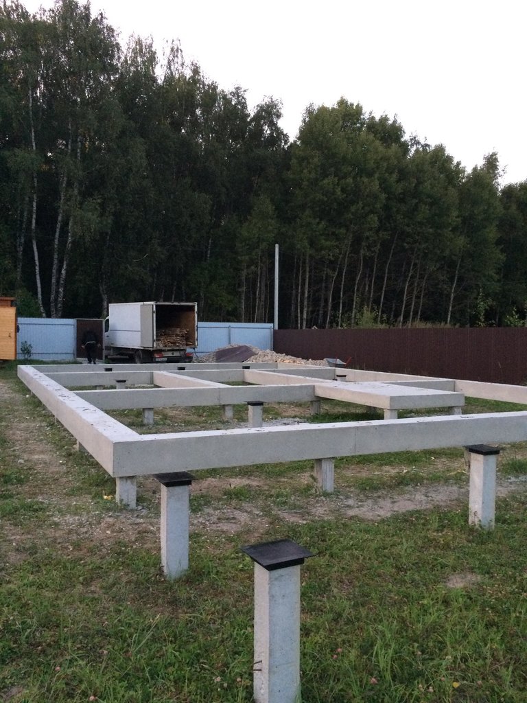 Свайно-ростверковый фундамент подходит для небольших, не слишком тяжелых зданий, но для совсем маленьких домов он экономически не оправдан.