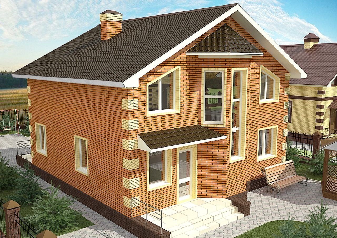 Фото двухэтажного дома из пеноблоков облицованного кирпичом