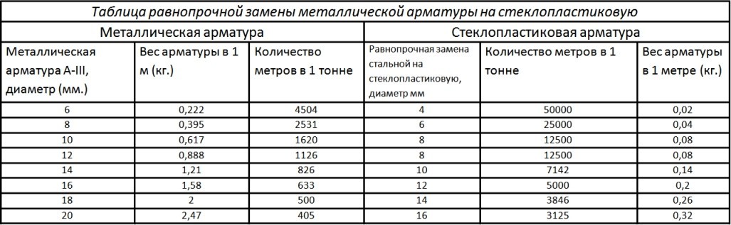 - Удельный вес готовых прутков из полимеров и стекловолокна в четыре раза меньше аналогичных по диаметру металлических.
