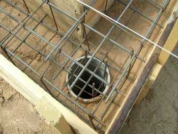 - В подготовленное углубление вставляется армированный скелет, важно следить, чтобы он не достал дна отверстия;