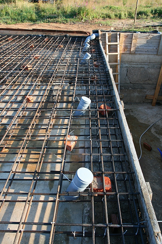 И потом, если центральную часть армировать стержнями большего диаметра, то прогиб посередине будет изначально меньше. При необходимости его можно достаточно просто устранить или скрыть под финишной отделкой.
