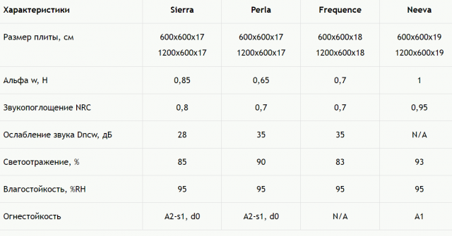 Как было сказано ранее, потолок представлен множеством моделей, но основные характеристики потолочных панелей армстронг следующие: