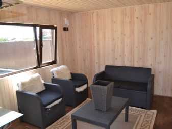 Интерьер в комнате отдыха, расположенной в бане требует к себе особого внимания, поскольку помещение это необычное – в нем люди расслабляются, общаются. Именно поэтому в комнате отдыха должна располагаться практичная, удобная и безопасная для использования мебель.