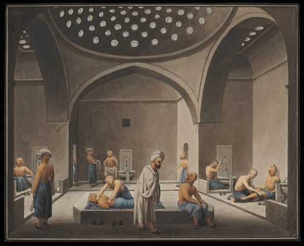 Нужно сказать, что еще в доисламские времена арабам были не чужды регулярные омовения, это естественная необходимость в условиях жаркого климата. Но если арабы лишь обливались холодной водой, то у византийцев они научились париться.