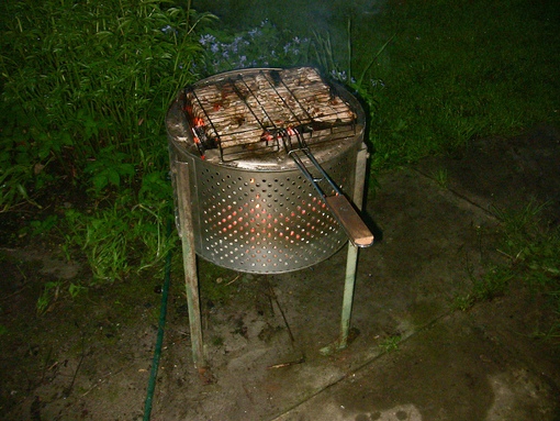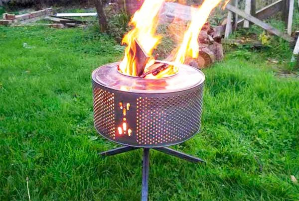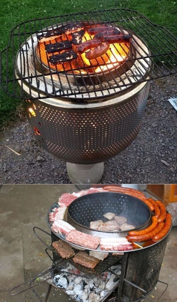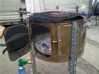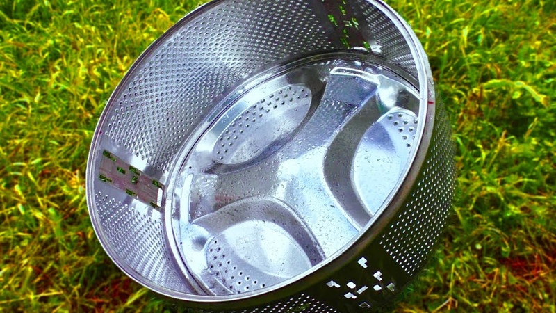 Корпус стирального барабана, изготовленный из прочной и качественной «нержавейки» выдерживает очень высокие температуры. Поэтому его можно использовать в качестве мангала.