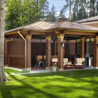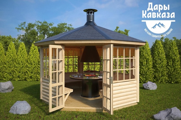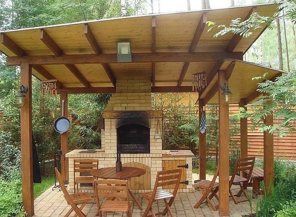 Беседка для дачи с барбекю и мангаломКакие бывают беседки