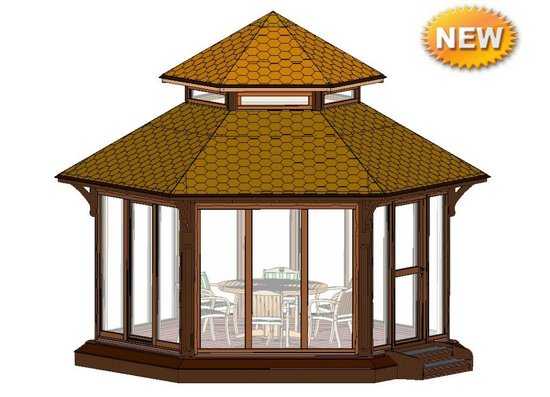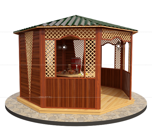 Если у вас грядет семейное торжество, то лучше места для его проведения найти сложно. Это сооружение не выглядит громоздким. Компактная конструкция может быть оснащена всем необходимым.