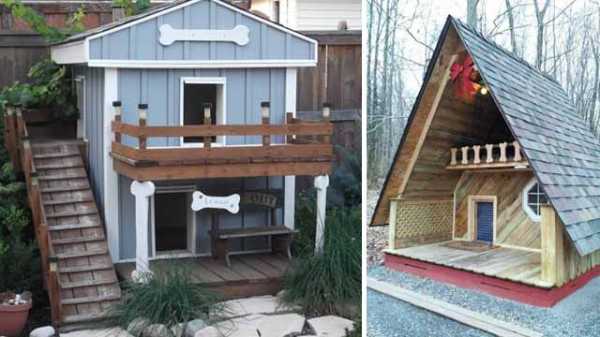 Конура из подручных материалов выглядит уникально. Мастера-умельцы придумывают интересные варианты.