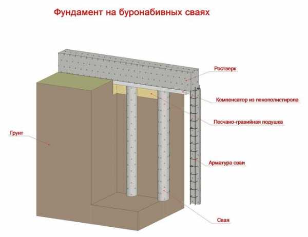 Следует знать, что на данный момент имеется более надежный, но дорогой способ, который заключается в том, что устанавливают буронабивные сваи с утеплителем. Для того, чтобы достигнуть такого эффекта требуется использовать пенополистирол, который обладает жесткой структурой. Сам по себе он фиксируется на гидроизоляцию, а после засыпается обычным грунтом. Самое важно свойство, которое достигается при использовании такого способа фундамента – пенополистирол является отличным амортизатором для пучения почвы.