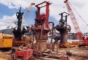 | Циркуляции глинистой смеси (позволяет обойтись без применения обсадной трубы) | Неустойчивый с высоким уровнем влажности | Шахта замыкается в единый цикл с отстойником. Затем в неё под давлением подают бентонитовый раствор, который, смешиваясь с грунтом, создает на стенках прочную глиняную корку. После внутрь устанавливается армирующий остов, который заливается бетонным раствором, выталкивающим глину.Во избежание растрескивания монолита опоры бетон подается непрерывно до полного заполнения шахты. |