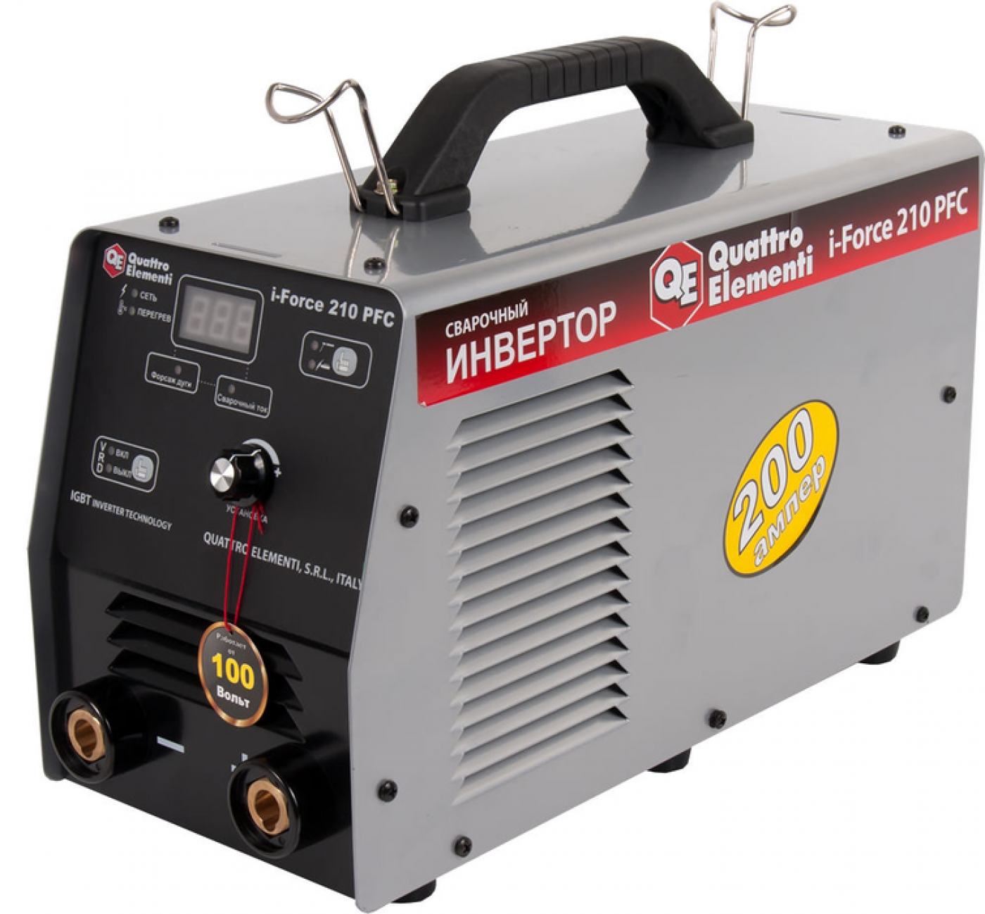 Обладает мощностью 8.6 кВт и выдает 30-200 А. Укомплектован кабелями из алюминия с сечением DX25. Диапазон входного напряжения составляет 150-220 В. Есть все функции для облегчения сварки тонкого металла и легкого возбуждения дуги. Весит модель 4.5 кг, и имеет габариты 26х12х18 см. Товар выделяется цифровым дисплеем для отображения количества установленных ампер. ПВ на «максималке» разрешено 40%.