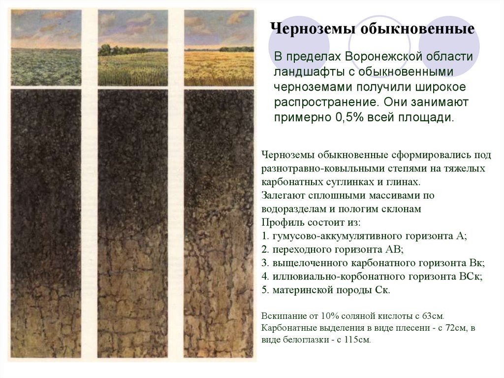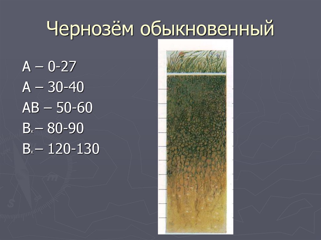В их составе одинаково прослеживается присутствие содержащих перегной слоев, переходных горизонтов и нижележащей базовой «материнской» породы; но в черноземе перегноя больше, и потому транзитный уровень находится на более существенной глубине.