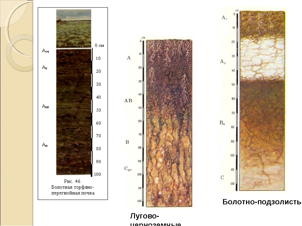 Чертой подзолистых местностей является органический горизонт типа A2. В подзоле, в отличие от черноземных масс, содержится преимущественно слаборазложенное органическое вещество.