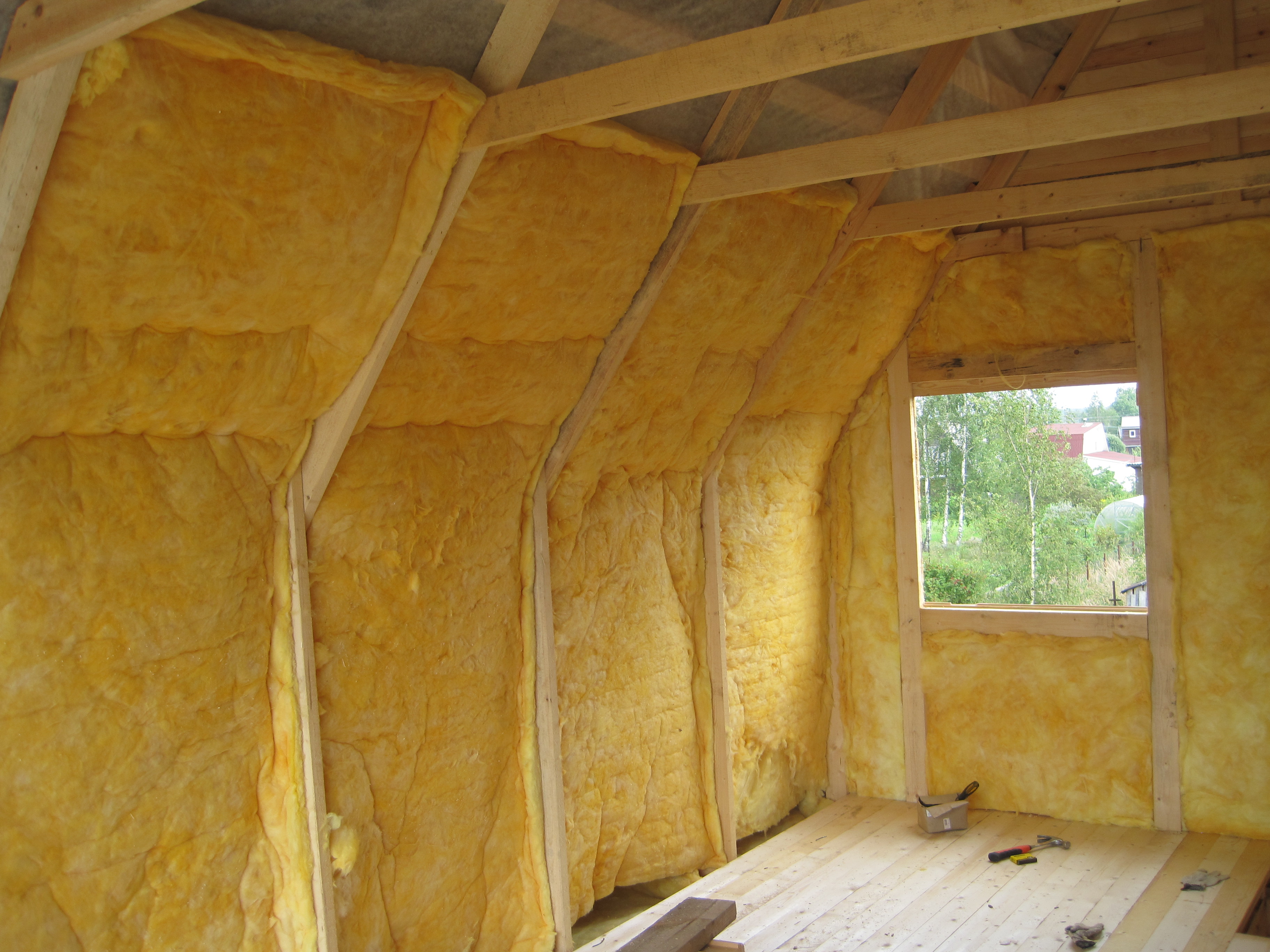 Внутренняя стена утепленная прессованной минеральной ватой.