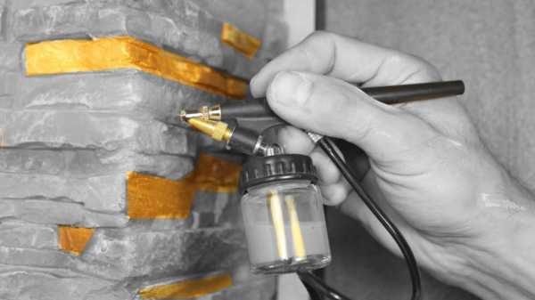 В продаже имеются разные виды аэрографов. Окрашивать декоративный камень можно самым бюджетным аэрографом – краскопультом. Важно при покупке обратить внимание на компрессор. От него зависит качество нанесения состава на камень.