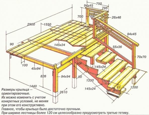 Выбирать проект можно любой в зависимости от архитектуры дома. Что касаемо размеров ступеней крыльца и прочих геометрических параметров, то нужно учесть такие факторы: