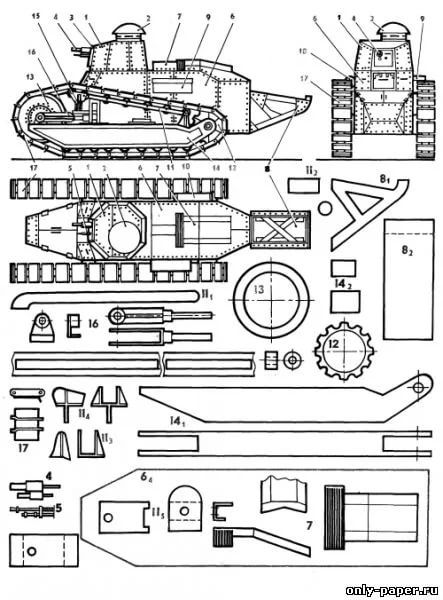 Для создания такого танка понадобится бумажный шаблон представленный ниже.