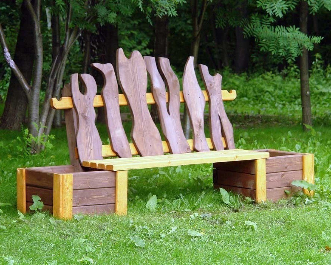 Для работы можно использовать как готовые пиломатериалы в виде брусков и доски, фанеры, так и то, что есть под рукой — старые поддоны, бревна, ветки и даже пни.