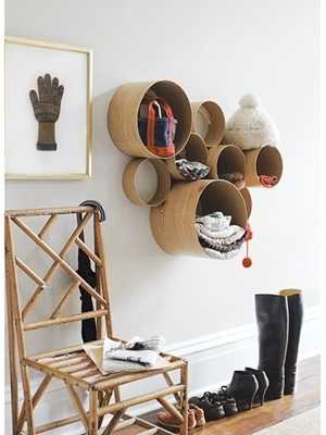 13. Можно сделать вот такие симпатичные полочки для мелочей в прихожей и оклеить их самоклейкой «под дерево».