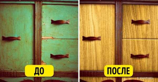 Старую мебель: шкафы и шкафчики, комоды, полки и многое другое можно обновить, используя пленку. Например, наклеить её на выдвижные ящики рабочего стола или туалетного столика.