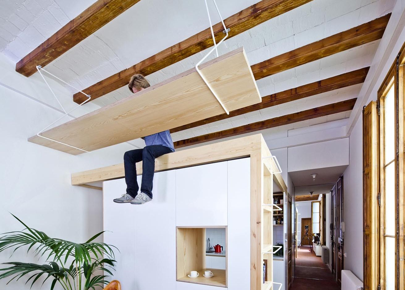 Чтобы поднять потолок, можно «вытянуть» комнату. Минимум горизонтали, максимум вертикали в пространстве.