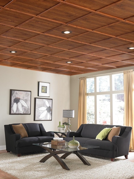 Чтобы эффект работал, остановитесь на кессонах светлых расцветок, а, чтобы сберечь высоту, выбирайте тонкие панели.