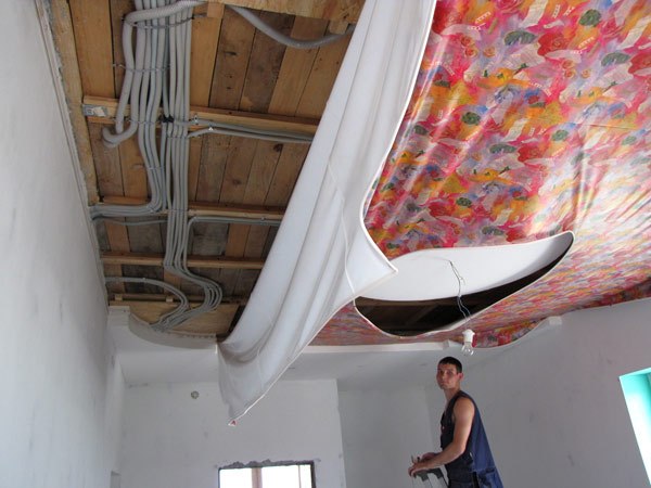 К недостаткам натяжных конструкций относят то, что их легко повредить острым предметом, в том числе карнизом для штор.