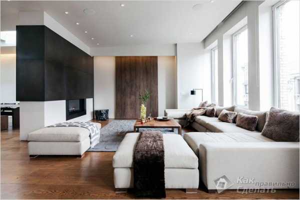 Пол во всей квартире обязательно должен быть выполнен из сочетающихся друг с другом материалов. Помните, что ламинат уложенный вдоль отлично сочетается с керамической плиткой или ковролин, но совершено не сочетается с натуральным паркетом.