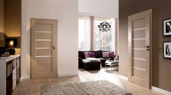 Допускается использование межкомнатных дверей на один-два тона темнее, оттенка напольного покрытия, однако правило про цветовое решение и фактуру все же должно оставаться неизменным.